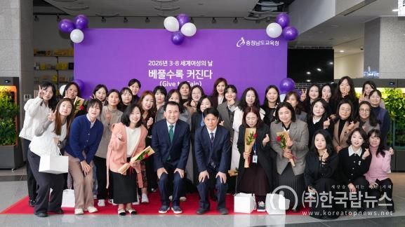 ㈜한국탑뉴스 고화랑 기자 | 충남교육청은 6일 도교육청 안뜨락에서 여성의 존엄과 권리의 의미를 되새기고 존중과 평등의 조직문화를 확산하기 위해 ‘2026년 세계 여성의 날’ 행사를 개최했다.