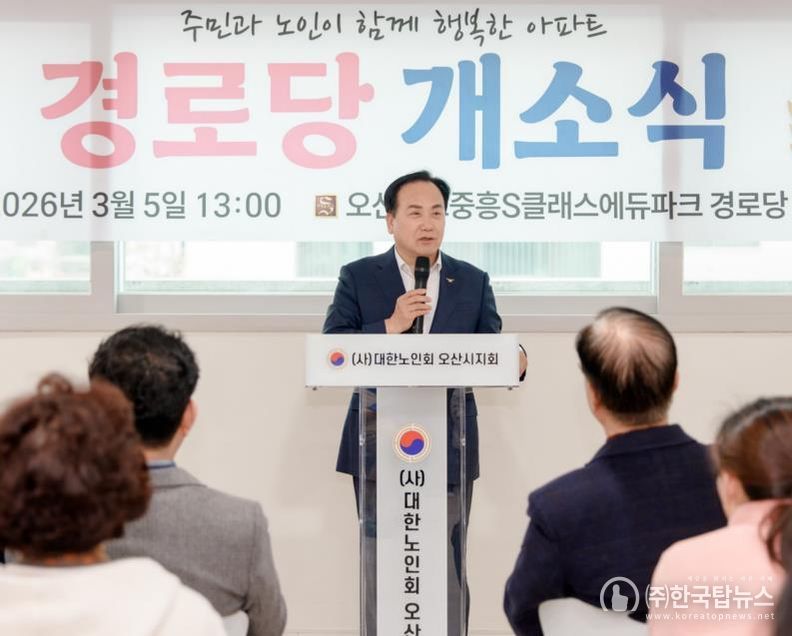 ㈜한국탑뉴스 송행임 기자 | 오산시는 지난 5일 세교 중흥S-클래스 에듀파크 아파트 내에서 ‘세교2 중흥에듀파크 경로당’ 개소식을 개최했다고 밝혔다.