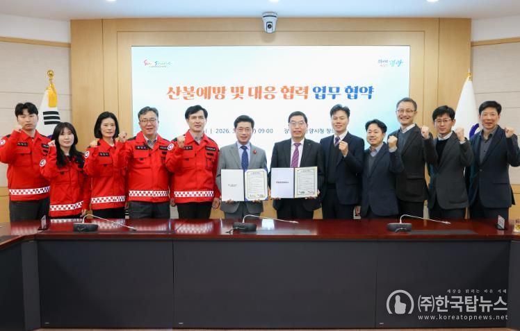 ㈜한국탑뉴스 송행임 기자 | 광양시는 11일 시청 창의실에서 한국전력공사 광주전남본부와 산불 예방 및 대응 협력을 위한 업무협약(MOU)을 체결하고 산림자원과 전력설비 보호를 위한 협력체계를 구축했다.