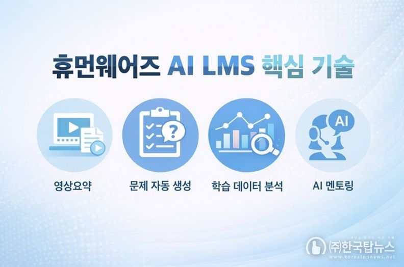 ㈜한국탑뉴스 차복원 기자 | IT 솔루션 기업 휴먼웨어즈(Humanwares)가 생성형 인공지능(AI)을 적용한 LMS(Learning Management System)의 핵심 기술 구조를 공개하며 AI 교육 플랫폼 시장 공략에 나섰다.