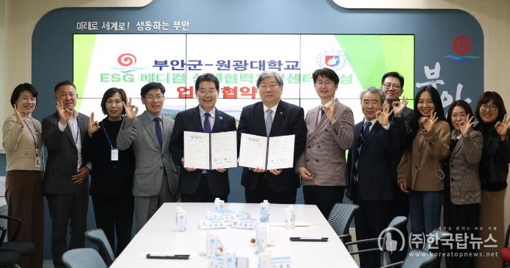 ㈜한국탑뉴스 송행임 기자 | 부안군과 원광대학교는 지난 16일 부안군청 중회의실에서 ESG 메디컬 상생협력 지원센터 조성을 위한 업무협약을 체결했다고 밝혔다.