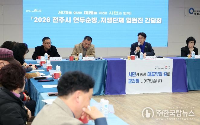 ㈜한국탑뉴스 송행임 기자 | 우범기 전주시장이 2026년 새해를 맞아 전주시 35개 동 주민들의 삶 속으로 찾아가 전주 대변혁을 위한 비전을 공유하고, 생활 속 불편사항에 귀를 기울이는 ‘2026년 연두순방’ 일정을 모두 마무리했다.