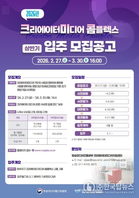 이와 함께 ‘디지털미디어 혁신 허브 플랫폼’을 통해 미디어 산업 정보 제공과 법률·세무 자문, 구인·구직 서비스 등을 제공하며 산업의 안정적인 성장 기반을 조성할 예정이다.