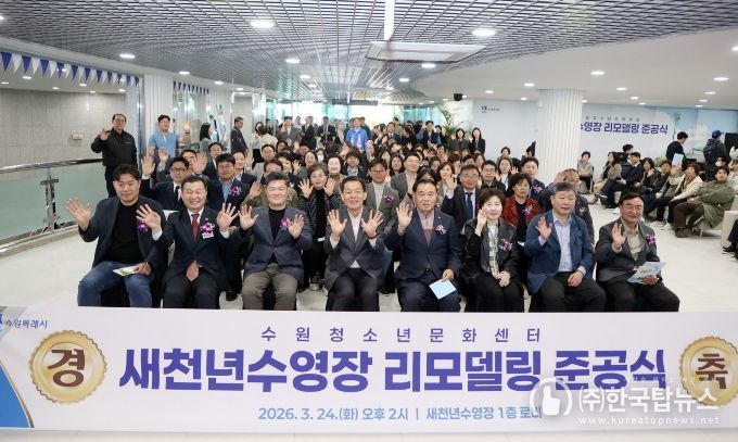 ㈜한국탑뉴스 송행임 기자 | 수원특례시의회는 24일 청소년문화센터 내 새천년수영장에서 열린 '새천년수영장 리모델링 공사 준공식'에 참석해 준공을 축하했다.