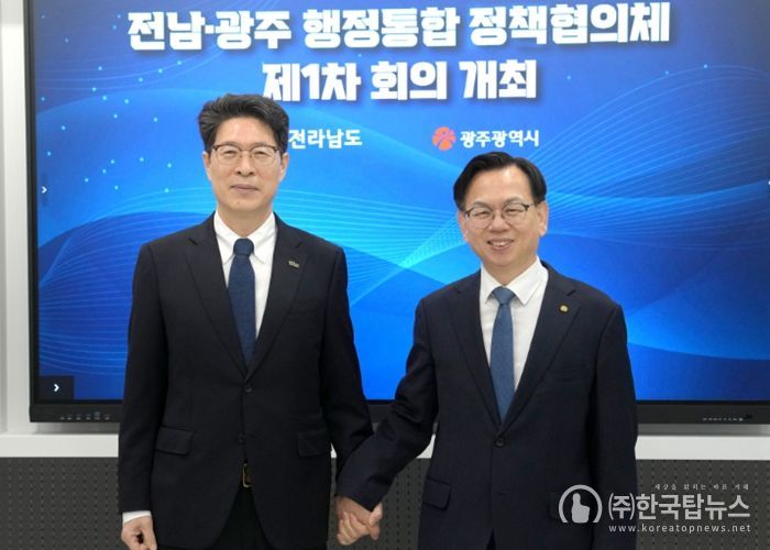 ㈜한국탑뉴스 송행임 기자 | 광주광역시와 전라남도는 권한대행을 중심으로 핵심 국장급 실무진으로 이뤄진 광주·전남 정책협의체를 지난 24일 발족하고, 제1차 회의를 가졌다.