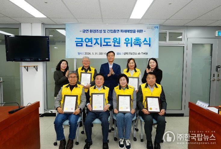 ㈜한국탑뉴스 송행임 기자 | 서울 성북구가 금연환경 조성과 간접흡연 피해 예방을 위해 지난 31일 신규 금연지도원 위촉식을 열고 본격적인 활동에 들어갔다.
