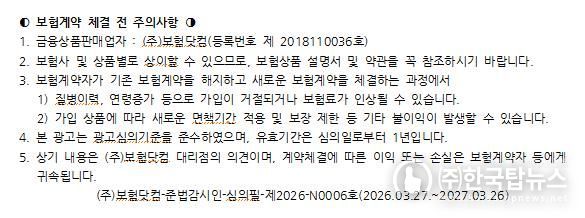 보다 자세한 가입 조건이나 적정 진단금액 설정은 비갱신형 암보험 비교사이트를 활용하여 여러 회사의 상품을 실시간으로 보험료 비교도 해볼 수 있으며, 다양한 정보를 비대면으로 주말까지 전문가와 상담이 가능하므로 3대진단비 등 종합건강보험 가입 시 편리하게 이용할 수 있다.