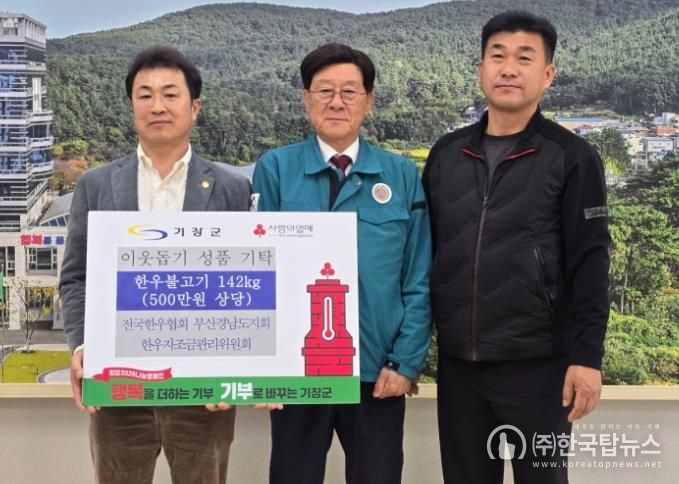㈜한국탑뉴스 송행임 기자 | 기장군은 지난 7일 전국한우협회 부산경남도지회가 관내 어려운 이웃에게 전달해 달라며 한우불고기 142kg(5백만원 상당)을 기탁했다고 9일 밝혔다.