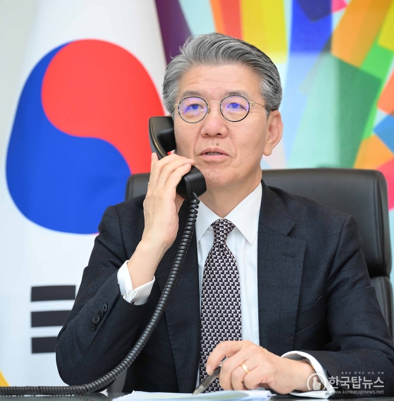 김홍균 외교부 제1차관은 4.8.(월) 「스테파노 사니노(Stefano Sannino)」 유럽연합(EU) 대외관계청 사무총장과 전화통화를 갖고