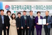 ㈜한국탑뉴스 고화랑 기자 | 대구시교육청은 10월 31일 오전 11시 시교육청 접견실에서 ㈜마이다스아이티와 ‘교육혁신 및 연구 협력을 위한 업무 협약’을 체결했다. 이번 협약은 지역 직업계고 학생들이 기업의 요구에 맞는 인재로 성장하여 성공적인 취업을 할 수 있도록 지원하고, 미래 교육의 방향을 함께 모색하고, 실제적인 교육 혁신을 위한 공동 연구를 위해 양 기관이 협력하기 위해 마련됐다. 이날 협약식은 강은희 교육감과 마이다스그룹 이형우 회장을 비롯해 양기관의 주요 관계자들이 참석해 진행됐다. 주요 협약 내용은 ▲직업계고 기업맞춤형 인재양성과 취업 지원, ▲역량교육 혁신을 위한 공동 과제 발굴과 연구, ▲교육혁신을 위한 정보, 기술·인력 상호 교류, ▲양 기관의 합의하는 교육혁신 및 연구 협력 등이다. 강은희 교육감은 “이번 협약을 통해 우리 학생들이 미래 사회의 주역으로 성장하는 데 실질적 도움을 줄 수 있도록 최선을 다하겠다”면서 “양 기관의 교류로 교육의 질을 한 단계 끌어올릴 것으로 기대된다.”고 말했다.