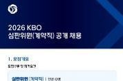 ㈜한국탑뉴스 구민성 기자 | KBO는 퓨처스리그에서 활동할 KBO 심판위원을 공개 채용한다. 이번 채용은 KBO 야구심판 양성과정 수료자(2026년 야구심판 양성과정 수료 예정자 포함) 또는 대한야구소프트볼협회(KBSA) 및 산하단체, 독립리그 소속 심판으로 1년 이상의 심판 활동 경력(단체장 직인 필수) 보유자에 한해서 지원이 가능하다. 최종 합격자는 2026 KBO 공식 심판위원으로 활동하게 되며, 근무 종료 후 평가 결과에 따라 정규직 전환이 검토된다. 채용과 관련된 세부 정보 및 우대 사항은 채용 공고문을 통해 확인 가능하다. 접수 기간은 오늘(2일)부터 23일(월)까지며, KBO 채용 홈페이지(kbo.saramin.co.kr)에서 지원 가능하다.