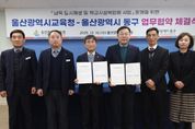 ㈜한국탑뉴스 고화랑 기자 | 울산광역시교육청과 울산동구청은 남목 도시재생 사업에 따라 동구 남목초등학교에 조성되는 공영주차장·어울림센터를 학교와 지역이 함께 사용하는 복합 공동생활(커뮤니티) 센터로 확대 개편하기로 했다. 울산교육청과 동구청은 10일 이 같은 내용을 담은 ‘남목 도시재생 사업과 학교시설 복합화 조성을 위한 변경 협약’을 맺었다. 이번 변경 협약은 2023년 9월 합의된 150면 규모 공영주차장과 학교 밖 관사 부지 어울림센터 조성을 지역과 학교가 공동 활용하는 통합형 복합시설로 재구조화하는 내용이 핵심이다. 교육청, 지자체, 학교가 협력해 교육, 돌봄, 문화 기능을 한 공간에 구축하는 ‘학교시설복합화’ 추진 목적에 맞춰 사업이 전면 재설계됐다. 변경된 계획에 따르면 기존 지하 2층 중심의 공영주차장 계획은 지하 1층부터 지상 3층까지 총면적 5,148㎡ 규모의 복합시설로 개편되며, 2027년 12월 준공 예정이다. 조성되는 시설은 102면 규모의 공영주차장, 지역주민을 위한 1, 2층 복합 공동생활 센터, 남목초등학교 전용 3층 교육시설로 구성된다. 또한 학