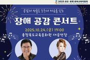㈜한국탑뉴스 고화랑 기자 | 충청북도교육청 직속기관 특수교육원은 24일 저녁, 장애와 비장애의 경계를 넘어 서로의 마음을 잇는 특별한 무대인 '모두의 마음을 잇는 장애 공감 콘서트'를 교육문화원에서 가졌다. 공연에는 학생, 학부모, 교직원, 도민 950여 명이 함께하며 장애인과 비장애인이 음악으로 소통하는 뜻깊은 시간을 나눴다. 이번 콘서트는 장애 인식 개선과 문화예술을 통한 사회적 공감 확산을 위해 마련된 무료 기획 공연이다. 우리나라 최초의 청각장애인 아이돌 그룹인 빅오션, 폭발적인 고음과 감성 보컬로 섬세한 표현력까지 겸비한 HYNN(박혜원), 소찬휘, 권인하 등의 가수가 출연해 다채로운 무대를 선보였다. 최명옥 특수교육원장은 “장애에 대한 사회적 인식 개선을 위해 앞으로도 특수교육원이 다양한 공연 및 행사로 장애 공감 문화 확산을 위한 중추적인 역할을 담당하겠다.”라고 밝혔다. 윤건영 교육감은 “이번 콘서트는 단순한 공연이 아니라, 서로의 다름을 이해하고 함께 어우러질 수 있는 사회를 만들어가는 작은 발걸음이다.”라며, “앞으로도 모두의 마음을 잇는 문화예술 프로그램을 지속적으로