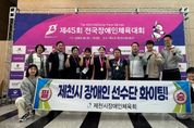 ㈜한국탑뉴스 구민성 기자 | 제45회 전국장애인체육대회에 출전한 제천시장애인선수단이 눈부신 성적을 기록하며 충청북도가 목표했던 종합 4위 달성에 크게 기여했다. 지난 10월 31일부터 11월 5일까지 6일간 부산광역시 일원에서 개최된 이번 대회에 제천시선수단은 충청북도를 대표해 역도 등 총 11개 종목 31명이 참가해 금메달 8개, 은메달 4개, 동메달 2개를 획득하는 쾌거를 달성했다. 역도 백경옥, 유우정 선수는 여자 50kg급, 72kg급 데드리프트, 스쿼트 종합에서 한국신기록을 기록했다. 특히 역도 백경옥 선수는 이번 대회까지 3년 연속 한국신기록을 새로 썼다. 또한 육상 이영애 선수는 여자 원반, 창, 포환던지기에서 3관왕에 오르며 충북 육상의 위상을 높였다. 이밖에도 수영, 축구, 역도에서 은·동메달을 추가하며 이번 대회에서 제천시장애인선수단의 실력을 유감없이 발휘했다. 김창규 제천시장(제천시장애인체육회장)은 “제천을 대표해 끊임없이 노력해주신 선수단 여러분께 진심으로 감사드린다”며, “제천시 장애인 체육 발전과 더불어 제천시 장애인 복지 개선을 위해 지속적으로 노력해 나가겠다