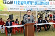 ㈜한국탑뉴스 송행임 기자 | 대전시의회 조원휘 의장은 25일 갑천파크골프 1구장(유성구 탑립동)에서 개최된 제15회 대전광역시협회장배 파크골프대회에 참석해 안전한 대회 진행을 기원하며, 일류 체육도시 대전 조성을 위한 정책적 관심과 지원을 약속했다. 이날 대회는 지역을 대표하는 단체·기관장, 임원 및 선수, 시민 등 350여 명이 참석한 가운데 시 협회장의 대회사, 주요내빈 축사, 기념촬영 등의 개회식을 마친 뒤 남녀와 시니어·일반부로 나눠 18홀 스트로크 방식의 본격적인 대회로 이어졌다. 조원휘 의장은 “대전에는 유등천, 갑천, 을미기공원 등 6곳, 총 99홀의 파크골프장이 운영되고 있으며, 시민들의 참여가 늘면서 이제는 파크골프가 대전의 대표적 생활체육으로 자리잡았다”면서, “시민들의 관심과 수요가 커지는 만큼 동구 용운동에 2026년 12월까지 4,600여 평, 성북동에 2029년까지 최대 90홀 규모의 파크골프장이 조성되는 등 대전시의회는 시민들의 체육인프라 조성에 많은 노력을 기울이고 있고, 앞으로도 시민 모두가 파크골프를 비롯한 다양한 생활체육을 언제, 어디서나 즐길 수 있도록 의회 본연의 역할에 최선을 다하겠다