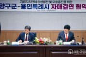 ㈜한국탑뉴스 송행임 기자 | 용인특례시는 6일 강원특별자치도 양구군과 자매결연을 하고, 두 도시의 교류와 발전을 위해 적극 협력하기로 했다. 이상일 시장은 이날 양구군청 중회의실에서 서흥원 군수와 두 도시 간 우의를 증진하고 상호 교류‧협력하는 데 합의하고, 자매결연 협약서에 서명했다. 이번 협약으로 양구군은 시의 16번째 자매도시가 됐다. 이상일 시장은 “양구는 문화예술 분야에서 과감한 투자를 하고 있고, 양구군립박수근미술관은 2023년 양구 출신 박수근 화백의 1956년 작품 ‘가족’을 품었는데 두 도시가 앞으로 가족처럼 잘 지냈으면 한다”며 “이번 협약을 계기로 양 도시가 협력을 강화해서 함께 발전하길 기원한다”고 말했다. 이 시장은 “양구군과 용인시의 훌륭한 농산물들이 양 도시에서 소비하도록 서로 홍보하는 등 협조 체계를 갖추는 노력도 기울이자"라며 "양구에는 테니스장, 축구장 등 스포츠 시설이 아주 잘 갖춰져 있는 만큼 용인의 스포츠팀이나 단체들이 양구를 찾아 훈련하는 등 체육 분야의 협력도 도모하면 좋겠다"고 했다. 서흥원 군수는 “용인의 인프라와 비전이 대한민국 지방자치단체