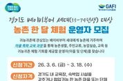 ㈜한국탑뉴스 송행임 기자 | 경기도와 경기도농수산진흥원은 ‘경기도 베이비부머 농촌 한 달 체험’을 운영할 마을·단체 2곳을 오는 18일까지 모집한다. 경기도귀농귀촌지원센터의 심사를 거쳐 선정된 체험 마을·단체 한 곳당 5개 팀을 맡게 되며, 체험 운영 역량 강화를 위한 멘토 교육과 프로그램 참가자 1팀당 최대 200만 원의 운영비가 지원된다. 마을·단체는 귀농·귀촌을 준비하는 베이비부머 세대(1955~1974년생)가 한 달간 농촌에 거주하며 영농실습과 지역민 교류를 체험할 수 있도록 임시 주거지와 교육 프로그램을 제공해야 한다. 귀농·귀촌 교육 및 숙박이 가능한 도내 농촌 마을·단체라면 경기도귀농귀촌지원센터 누리집에서 내려받은 신청 서식을 전자우편으로 제출해 신청할 수 있다. 기타 자세한 사항은 누리집 공고문이나 전화 문의를 통해 확인 가능하다. 최창수 경기도농수산진흥원장은 “베이비부머 세대가 막연한 귀농·귀촌이 아닌, 충분한 체험과 준비 과정을 거쳐 안정적으로 정착할 수 있도록 지원하겠다”며 “역량 있는 마을의 많은 참여를 기대한다”고 말했다.