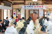 ㈜한국탑뉴스 송행임 기자 | 성주군은 지난 25일 성주향교 대성전에서 공자를 비롯한 선현들의 뜻을 기리고 전통 제례 예법 및 유교 문화를 전승시키기 위한 추계 석전대제를 봉행했다. 이날 봉행에는 지역 유림과 향교 관계자 등 100여 명이 참석했으며, 초헌관으로 전교 이윤식, 아헌관으로 홍재하씨, 종헌관으로 도석호씨가 참여하여 예를 다했고, 지역 원로 유림들이 향헌관, 집례, 대축 등 각자의 역할을 맡아 전통문화의 중요성을 함께 되새겼다. 석전대제는 공자를 비롯한 유교 성현들에게 지내는 가장 큰 제례로, 매년 음력 2월과 8월 상정일(上丁日)에 전국 향교와 성균관에서 일제히 봉행되고 있다. 이병환 성주군수는 “석전대제는 선현들의 학문과 덕행을 기리고 그 가르침을 오늘날에 되살리는 뜻깊은 행사”라며 “성주향교가 지역사회에서 전통문화 계승뿐만 아니라 소통·화합의 장으로 중추적인 역할을 해주심에 항상 감사드린다”고 밝혔다. 한편 성주향교에서는 국가유산활용사업, 전통예절교육, 기로연, 인성프로그램 등 다양한 문화 사업을 통해 지역주민과 함께하는 전통문화 계승 사업을 지속적으로 추진할 계획이다.