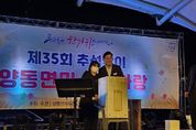 ㈜한국탑뉴스 한민석 기자 | 양평군 양동면은 지난 6일, 쌍학교 야외무대에서 제35회 추석맞이 면민 노래자랑을 성황리에 개최했다고 밝혔다. 이번 행사는 비가 내리는 궂은 날씨에도 불구하고 면민들의 뜨거운 참여와 열정으로 추진됐으며, 고향을 찾은 귀성객과 주민들이 함께 어우러져 명절의 흥과 정을 나누는 화합의 장이 됐다. 특히 이날 행사에는 전진선 양평군수가 참석해 직접 인사말을 전하고 경품 추첨에도 참여하며, 주민들과 소통하는 시간을 가졌다. 전진선 양평군수는 “비 오는 날씨에도 함께해 주신 양동면 주민 여러분께 진심으로 감사드린다”며 “오늘처럼 한마음으로 웃고 즐기는 모습이 바로 행복한 양평의 힘”이라고 전했다. 노래자랑 본선에는 30명의 참가자가 무대에 올라 다양한 장르의 노래와 퍼포먼스를 선보이며 큰 호응을 얻었다. 초대가수 한가빈의 축하 무대와 각종 경품 추첨 이벤트도 더해져 현장은 열띤 분위기로 가득했다. 정창업 양동면장은 “이번 행사는 주민 한 분 한 분의 참여로 완성된 뜻깊은 자리였다”며 “앞으로도 지역의 정과 문화를 함께 나눌 수 있는 자리를 지속적으로 마련해, 모두가 즐