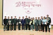 ㈜한국탑뉴스 한민석 기자 | 포천시는 지난 1일 시청 대회의실에서 제23회 포천시민의 날을 기념해 2025년 한 해 동안 지역 발전에 기여한 유공자들을 대상으로 표창 수여식을 개최했다. 이날 행사에는 백영현 시장을 비롯해 임종훈 포천시의회 의장, 김용태 국회의원을 대신한 김길주 사무국장과 수상자 등 100여 명이 참석해 자리를 빛냈다. 올해 표창은 △경기도지사 표창 8명 △포천시장 표창 65명 △포천시의회 의장 표창 14명 △국회의원 표창 14명 등 총 101명에게 수여했다. 수상자들은 지역사회 봉사, 문화·체육 진흥, 농업 발전, 지역경제 활성화 등 다양한 분야에서 묵묵히 헌신한 공로를 인정받았다. 백영현 포천시장은 “포천의 오늘을 있게 한 주인공은 바로 시민 여러분”이라며, “각자의 자리에서 보여주신 헌신 덕분에 포천이 함께 성장하는 희망의 도시로 나아갈 수 있었다. 앞으로도 모두가 행복한 도시를 만들기 위해 최선을 다하겠다”고 말했다. 한편, 제23회 포천시민의 날 기념 행사는 10월 12일 포천종합운동장에서 열릴 예정이다.