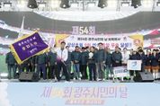 ㈜한국탑뉴스 한민석 기자 | 광주시는 지난 28일 광주시 공설운동장에서 ‘제54회 광주시민의 날’ 행사를 성황리에 개최했다. ‘체육으로 하나되다’를 구호로 열린 이번 행사는 광주시민의 자긍심을 높이고 지역 공동체 의식을 강화하기 위해 마련됐으며 시민 3천여 명이 참여해 다채로운 프로그램을 즐겼다. 행사는 오전 9시 30분 읍·면·동 대표 선수단의 입장으로 시작됐으며 이어진 기념식에서는 지역발전에 기여한 시민들에 대한 표창 수여와 축하 메시지가 전달되며 뜻깊은 시간을 가졌다. 이후 체육대회와 문화 공연 등 다채로운 프로그램이 펼쳐졌다. 시민들은 구슬땀을 흘리며 화합과 경쟁의 즐거움을 나눴고 광주시립광지원농악단의 공연과 홍보대사 마커스 강, 초대가수 나태주의 축하 무대가 이어지며 현장 분위기를 뜨겁게 달궜다. 이날 방세환 시장은 “시민 여러분의 열정적인 참여와 협조 덕분에 올해 시민의 날 행사를 성공적으로 마칠 수 있었다”며 “앞으로도 시민이 주인이 되는, 시민과 함께하는 행사를 지속적으로 만들어 가겠다”고 밝혔다.