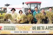 ㈜한국탑뉴스 한민석 기자 | 안성시농업기술센터는 9월 29일, 안성시 지역특화 벼 품종인 ‘수찬미’의 벼 베기 행사를 성황리에 개최했다. 이번 행사는 2025년부터 본격 보급된 ‘수찬미’를 널리 알리고, 기존 외래품종 ‘추청’을 대체할 대안으로 홍보하기 위해 마련됐다. 이번 행사에는 김보라 안성시장을 비롯해 안성시 및 경기도농업기술원 관계 공무원, 농협중앙회 안성시지부장, 지역농협 조합장 및 안성마춤농협 관계관, 안성시 농촌지도자 및 쌀연구회 회원, 벼 재배 농업인 등이 참석했다. 이날 김보라 시장은 직접 콤바인에 탑승해 수확 시연에 참여하며 농업인들의 노고를 격려하고 수확의 기쁨을 함께 나눴다. ‘수찬미’는 경기도농업기술원이 개발한 중생종 중간찰 벼로, 보람찰과 밀키퀸을 교배해 만들어졌다. 밥맛과 식감이 뛰어나고 수발아율이 낮아 기후변화에 대한 적응력도 높다. 특히 지난 55년간 안성지역 대표 품종으로 널리 재배되고 있는 추청벼가 2027년부터 보급종 공급이 중단될 예정이어서, ‘수찬미’가 안성시의 대체 품종으로 주목받고 있다. 김보라 시장은 “수찬미는 올해부터 500ha로 본격 도입되어 내년에는 재배면적을