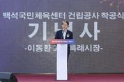 ㈜한국탑뉴스 한민석 기자 | 고양특례시는 지난 29일, 일산동구 백석동에서 ‘백석국민체육센터’착공식을 개최했다. 착공식에는 이동환 고양특례시장, 이기헌 국회의원 등 주요 내빈과 백석동 주민, 주민자치회 위원 등이 참석해 백석국민체육센터 착공을 축하했다. 백석국민체육센터는 지하 1층~지상 3층, 연면적 2,151.34㎡(652평) 규모의 건축물로 다목적체육관과 관람석, 운동처방, 사무실 등 지역주민 건강과 생활체육 활성화 기반을 다질 복합공간이다. 센터 1층에는 체육관의 입구, 로비 등 공용공간으로만 조성된다. 주차장은 대부분 통행이 쉬운 기둥 구조(필로티 구조)로 조성돼 장애인, 노약자가 쉽게 접근하고 이용할 수 있다. 2층은 다목적체육관으로 기존의 구기종목뿐만 아니라 격투기, 우슈(무술) 등 비인기 종목을 즐길 수 있으며, 운동처방실, 샤워실 등이 설치된다. 3층에는 체육센터 운영 사무실과 200석 규모의 관람석이 설치돼 운동경기·행사를 관람할 수 있다. 또한 임대공간을 별개의 건물로 마련한다. 이동환 고양특례시장은 “백석국민체육센터가 기존 체육시설을 연계해 다양한 생활체