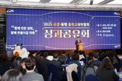 ㈜한국탑뉴스 고화랑 기자 | 충청북도교육청은 15일 14시, 엔포드 호텔에서 2025. 공감‧동행 충북교육박람회 성과공유회를 개최했다. 행사에는 도교육청 및 직속기관, 교육지원청, 각급 학교와 유관기관 관계자, 부스 및 프로그램 운영 담당자, 자원봉사자 등 총 300여 명이 참석했다. 성과공유회는 지난 10월 22일(수)부터 26일(일)까지 5일간 교육문화원과 생명누리공원에서 열린 충북교육박람회의 주요 성과와 우수 사례를 공유하고 향후 발전 방향을 모색하기 위해 마련됐다. 특히, 박람회가 성공적으로 운영될 수 있도록 기획‧운영‧자원봉사 등 다양한 현장에서 헌신한 참여자들의 노고를 함께 돌아보고 감사의 마음을 나누는 자리였다. 성과 공유회는 '함께 만든 변화, 함께 여는 미래'를 주제로 축하공연, 1부 성찰과 공유, 2부 미래 설계 순으로 진행됐다. 축하공연에서는 '몸활동 꿈끼페스티벌 경연 한마당'에서 우수한 성과를 거둔 모충초등학교 9명 학생의 댄스 공연과 내곡초등학교 21명 학생의 합창 공연이 펼쳐졌다. 1부에서는 ▲충북교육박람회 영상 다시보기 ▲준비부터 운영까지 전 과정