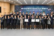 ㈜한국탑뉴스 한민석 기자 | 김동연 경기도지사가 23번째 민생경제 현장투어로 대한항공과 SK하이닉스 등 글로벌기업 투자유치에 성공한 부천시를 방문해 부천대장 R&D클러스터를 전기로 삼아 부천시와 경기도 서부권 발전을 견인하겠다고 밝혔다. 김동연 지사는 15일 부천 오정구청에서 부천대장 공공주택지구내 글로벌 기업들의 토지매매 및 입주계약 체결식에 참석한 뒤 기업인 간담회를 진행했다. 이 자리에는 서영석 국회의원, 조용익 부천시장, 대한항공, SK하이닉스, SK이노베이션, DN솔루션즈 관계자, 이선구·황진희·이재영·김동희·유경현·박상현 도의원, 한국토지주택공사(LH), 부천도시공사 관계자 등이 참석했다. 김동연 지사는 “부천은 서부권의 가장 핵심이 되는 허브 도시로서 4개 기업이 오늘 입주 계약을 체결했다. R&D클러스터에 앵커기업이 들어오게 돼 대단히 기쁘다”며 “이를 전기로 삼아 부천시 발전, 경기도 서부권, 대한민국 발전을 견인하는 역할을 하도록 최선을 다하겠다”고 말했다. 간담회에서 기업 관계자들은 경기도의 신속한 행정절차와 기반시설, 부대시설, 주거환경 조성 등을 건의했다. 이에 김 지사는 “