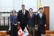 ㈜한국탑뉴스 송행임 기자 | 김석기 외교통일위원장, 필립 라포튠 주한캐나다대사 면담 - 라포튠 대사, “한-캐 안보ㆍ국방 파트너십 발표 뜻깊게 생각” - 김 위원장, “향후 양국의 산업ㆍ방산 협력 호혜적으로 발전해나가길” ▲김석기 외교통일위원장, 필립 라포튠 주한캐나다대사 만남 김석기 국회 외교통일위원회 위원장은 3월 11일 오후 국회에서 필립 라포튠 주한캐나다대사를 면담하고, 양국의 안보·방산 협력 및 경제 현안에 대해 심도 있는 의견을 나눴다. 김 위원장은 라포튠 대사의 부임을 환영하며 "양국은 민주주의와 경제, 기술 등 다양한 분야에서 가치를 공유하는 미래지향적 파트너"라고 강조했다. 특히 한국전쟁 당시 캐나다군의 희생을 언급하며 양국이 역사적 인연을 바탕으로 한 전통적 우방국임을 재확인했다. 이에 라포튠 대사는 "어디서 왔는지 알아야 어디로 갈 수 있다"는 철학을 밝히며, 오는 4월 한국전쟁 참전 캐나다 용사들의 방한 행사가 예정되어 있다고 답했다. 또한, 2022년 양국 관계가 '포괄적 전략 동반자 관계'로 격상된 이후 협력이 더욱 공고해졌음을 높이 평가했다. 이번 면담의 주요 화두는 캐나다의 차기 잠수함 도입 프로젝트와 관련된 산업 협력이었다.(불