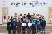 ㈜한국탑뉴스 차복원 기자 | 제주시는 3월 10일 시청 1별관 회의실에서 제주우체국(국장 오달규)과 ‘안부살핌 우편서비스’ 업무 협약을 체결했다. 이날 협약은 김완근 제주시장과 제주우체국장 등 15명이 참석한 가운데 우편서비스를 활용해 지역 내 촘촘한 사회안전망을 구축하기 위해 마련됐다. 이번 협약에 따라 제주시는 지역 내 고립가구 중 집중관리가 필요한 대상 가구를 발굴하고, 안부 확인과 물품 제공, 모니터링, 배달 정도 회신에 따른 사후관리를 진행한다. 또한 제주우체국은 관리가 필요한 고립가구에 물품을 배송하고 안부 확인 결과를 회신하며 긴밀히 협력한다. 한편 제주시는 지난해 사랑배달 복지등기우편 1,754건을 발송하고, 현장방문을 통한 위기조사를 진행한 바 있다. 김완근 제주시장은 “제주 지역 중장년 1인 가구가 증가하고 고독사도 늘어나는 추세여서 사회안전망 강화와 대응책 마련이 시급하다”며, “집중 관리가 필요한 고립가구에 더욱 촘촘한 사회안전망이 형성되길 바란다”고 말했다. 이어 “시민 누구도 소외되거나 고립되지 않도록 꼼꼼히 살피겠다”고 덧붙였다.