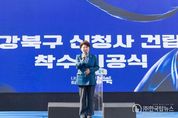 ㈜한국탑뉴스 송행임 기자 | 강북구의회 김명희 의장(번1·2동, 수유2·3동)은 지난 3월 10일, 구(舊) 강북구청 광장에서 열린 ‘강북구 신청사 건립 착수 기공식’에 참석해 신청사 건립의 본격적인 시작을 함께했다. 이날 행사는 강북구립소년소녀합창단의 식전 공연으로 시작됐으며, 신청사 건립사업 홍보영상 ‘함께한 추억, 새로운 내일’ 상영에 이어 신청사 건립 추진경과 보고와 설계안 설명, 철거 및 본공사 일정 안내 등이 진행됐다. 강북구 신청사는 구(舊) 강북구청 부지와 인근 부지를 포함한 수유동 192-59번지 일원에 지하 6층~지상 17층, 연면적 약 6만8천㎡ 규모의 복합청사로 건립될 예정이며, 완공되면 강북구청·구의회·수유3동주민센터·보건소 등 주요 행정기관이 한곳에 모여 보다 효율적인 행정체계를 갖추게 된다. 전망대와 공연장, 북라운지 등 다양한 주민 편의시설도 조성되며, 건물을 들어 올린 개방형 1층 공간은 공원과 광장의 기능을 하는 주민 소통 공간으로 활용될 계획이다. 아울러 400면 이상의 지하주차장이 마련돼 수유역 일대 주차난 해소에도 도움이 될 것으로 기대된다. 김명희 의장은 “신