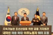 ㈜한국탑뉴스 차복원 기자 | 김종훈 울산 동구청장은 변광용 거제시장, 김태선 국회의원과 함께 12월 22일 오전 11시 20분 국회 소통관에서 공동 기자회견을 열고, 조선산업의 지속 가능한 성장과 국가 경쟁력 강화를 위해 내국인 정규직 채용 확대와 균형 잡힌 인력 운영 정책 마련을 정부와 기업에 촉구했다. 김종훈 울산 동구청장과 변광용 거제시장, 김태선 국회의원은 이날 기자회견에서 ‘조선산업 구조개선 및 내국인 채용 확대를 위한 공동성명서’를 발표하고, 국가 차원의 종합적이고 전략적인 구조개혁을 더 이상 미루어서는 안 된다고 강력히 촉구했다. 참가자들은 “HD현대중공업·삼성중공업·한화오션 등 조선 3사의 3분기 매출은 10조 원을 넘어서며 고성장 국면에 들어섰지만, 정작 조선산업 도시인 울산 동구와 거제는 인구 급감, 상권 붕괴, 부동산 거래 급감, 청년 및 숙련공 이탈 등 지역경제의 쇠퇴가 심해지고 있다, 산업-지역 간 단절 구조가 고착화되어 지역의 생존 기반을 위협하고 있다”라고 호소했다. 참가자들은 △ 조선산업 기본법 제정 및 국가 차원의 구조개선 △ 외국인 쿼터제 축소와 지자체 협의 의무화 △ 내국인 정