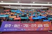 ㈜한국탑뉴스 차복원 기자 | 아산시가 원주시·구미시·진주시와 손잡고 대도시 특례 기준 완화와 지방자치분권 강화를 위한 공동 대응에 나섰다. 오세현 아산시장은 22일 국회의원회관 제2소회의실에서 열린 ‘지방자치 균형성장 발전을 위한 원주·아산·구미·진주 공동포럼’에 참석했다. 이날 포럼에서는 4개 도시가 함께 대도시 특례 기준 완화와 관련한 공동건의문에 서명하고, 관련 법령 개정을 정부와 국회에 공식 건의했다. 이날 행사에는 아산·원주·구미·진주시 단체장을 비롯해 지역구 국회의원과 전문가들이 참석했다. 참석자들은 지방 중추도시가 스스로 성장의 기준을 세우고, 국가 균형발전의 주체로 기능해야 한다는 데 뜻을 모았다. 개별 도시 차원의 요구를 넘어, 유사한 제도적 한계를 겪고 있는 지방 중추도시들이 연대해 제도 개선을 촉구한 공식 행동이라는 점에서 의미를 더했다. 공동건의문에는 ▲인구 30만 명·면적 500㎢ 이상 지방자치단체에 대한 대도시 특례 기준 완화 ▲핵심 거점도시가 국가 균형발전의 축으로 자리매김할 수 있도록 하는 제도적 기반 마련 ▲분권과 자율을 통해 지방이 자립적으로 성장할 수 있는 실질적인 권한 이양과