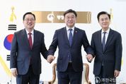㈜한국탑뉴스 송행임 기자 | 이장우 대전시장은 6일 오후 4시 정부세종청사에서 윤호중 행안부 장관, 김태흠 충남지사와 간담회를 갖고, 대전․충남 행정통합 특별법의 원안 관철을 정부에 촉구하며 관련 건의문을 공식 전달했다. 이번 간담회는 국회 행정안전위원회 특별법 심사를 목전에 두고, 통합 지방정부의 실질적인 경쟁력 확보와 행정통합 현안을 논의하기 위해 마련됐다. 이 시장은 건의문을 통해 다음의 4대 핵심 사항을 강력히 요청했다. 첫째, 국가 균형발전을 위한 ‘행정통합 기본법’ 제정이다. 지역 간 권한 차이 등 차별적 요소를 해소하고 통합 지자체에 공통 적용될 법적 기반 마련이 시급함을 역설했다. 둘째, 지역 주도 성장을 위한 ‘재정 자율성’ 확대이다. 연간 8조 8,774억 원 규모의 국세 이양 등 항구적인 재정 자립을 위한 권한이 특별법에 명문화되어야 함을 건의했다. 셋째, 준연방제 수준의 지방정부 실현을 위한 ‘권한이양’이다. 자치권을 위축시키는 독소 조항을 개선하고, 지역의 미래를 스스로 결정할 수 있는 실질적인 사무 권한 반영을 강조했다. 넷째, 대통령-시·도지사 간담회 개최이다