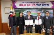 ㈜한국탑뉴스 차복원 기자 | 김해시는 24일 김해시청에서 대한무역투자진흥공사와 김해AI무역지원센터 운영을 위한 상호협력 업무협약을 체결했다. 협약식에는 홍태용 시장을 비롯해 강상엽 KOTRA 부사장, 손병철 KOTRA 경남지원본부장 등이 참석했다. 협약의 주요 내용은 ▲센터 공동 운영을 통한 협력 강화 ▲AI무역지원센터를 활용한 AI 기반 해외시장 분석, 바이어 발굴 등 협력사업 수행 ▲AI무역인력 양성을 위한 교육사업 수행 등이다. 협약 체결을 통해 김해시와 KOTRA는 AI무역지원센터의 공동 운영을 지속해 더 많은 기업이 효율적으로 해외판로를 개척할 수 있도록 지원하는 등 협력을 강화하는 데 뜻을 모았다. 주촌면 중소기업비즈니스센터 1층에 위치한 센터는 정부의 AI 강화 정책을 반영하고자 기존 김해디지털무역종합지원센터에서 김해AI무역지원센터로 명칭을 변경하고 확대 개편했다. AI기술을 활용한 해외시장 분석, 바이어 발굴, 마케팅 지원 등으로 지역 기업의 수출 활성화를 지원하는 거점 역할을 수행한다. 김해시 관계자는 “이번 협약 체결로 지역 기업들이 AI 기반 무역 지원