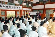 ㈜한국탑뉴스 송행임 기자 | 경남 밀양시는 24일 향교 대성전에서 밀양향교 주관으로 공자를 비롯한 성현들의 학덕을 기리는 춘계 석전대제를 엄숙히 봉행했다고 밝혔다. 이날 제례에는 초헌관에 안병구 밀양시장, 아헌관에 손기호 옹, 종헌관에 손병돈 옹이 참여해 정성을 다해 예를 올렸다. 참석자들은 전통 제복을 갖춰 입고 분향과 헌작 등 정해진 예법에 따라 제례를 진행하며 의식에 품격을 더했다. 이번 석전대제는 경건한 분위기 속에서 진행됐으며, 선현들의 가르침을 되새기고 전통 윤리 의식을 계승하는 소중한 시간이 됐다. 밀양시 관계자는 “석전대제는 우리의 전통을 계승하고 그 가치를 재조명하는 뜻깊은 의식”이라며, “지역의 전통문화를 이어나가는 김대국 전교님을 비롯한 지역의 유림분들께 깊은 감사의 말씀을 드린다”고 전했다. 한편, 조선시대부터 지역 교육의 산실 역할을 해온 밀양향교는 전통문화 계승에 앞장서고 있다. 특히 올해는 향교 교육 및 체험 프로그램을 새롭게 도입해 시민들에게 전통 예절과 유교 문화를 경험할 수 있는 다양한 기회를 확대 제공할 계획이다.
