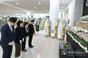 ㈜한국탑뉴스 송행임 기자 | 대전 동구의회는 24일 대전시청 1층에 마련된 안전공업 화재 희생자 합동분향소를 찾아 조문했다. 이날 분향에는 오관영 의장을 비롯해 강정규 부의장, 박철용 의원, 김영희 의원 등이 함께했다. 참석 의원들은 희생자들의 넋을 기리고, 유가족에게 애도의 뜻을 전했다. 오관영 의장은 “갑작스러운 사고로 생명을 잃으신 희생자분들의 명복을 빌며, 유가족 여러분께 깊은 애도의 뜻을 전한다”며 “다시는 이러한 안타까운 사고가 반복되지 않도록 의회 차원에서 안전 점검 체계를 더욱 꼼꼼히 살피겠다”고 밝혔다.
