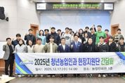 ㈜한국탑뉴스 차복원 기자 | 장성군이 최근 농업기술센터 농업인회관에서 ‘청년농업인과 현장지원단 간담회’를 열었다. 청년농업인, 현장지원단, 관계 공무원 등 40여 명이 참석해 △농업기술 △농산물 판로 확보 방법 △유통 전략 등 영농분야 전반에 대한 경험을 공유했다. 영농 고민을 해결해 주는 즉석 상담 시간도 가졌다. 간담회를 마친 현장지원단은 오는 30일까지 청년농가를 직접 방문해 영농 현황을 점검하고, 경영 개선방안을 제시하는 등 맞춤 지원에 나설 계획이다. 김한종 장성군수는 “청년농업인의 안정적인 정착을 든든하게 뒷받침할 수 있도록, 농업 현장에 꼭 필요한 지원을 강화해 가겠다”고 말했다.