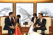㈜한국탑뉴스 차복원 기자 | 김태흠 충남도지사는 6일 도청 접견실에서 다이빙(戴兵) 주한 중국대사와 만나 양 지역 간 교류·협력 확대 방안을 논의했다. 이번 접견은 다이빙 대사 부임 이후 처음으로 이뤄진 공식 방문으로, 1992년 한중 외교관계 수립 이후 축적된 양국 간 교류 성과를 토대로 상호 이해와 신뢰를 재확인하고 안정적인 관계 발전 방향을 모색하는 자리로 마련됐다. 이 자리에서 김 지사는 “중국에는 ‘화합이 번영을 만든다’라는 뜻의 ‘화기생재(和氣生財)’라는 말이 있는데 이 말이 오늘날 한국과 중국에 딱 어울린다”라며 “한중 간 인문 교류가 점차 회복되는 가운데, 지방정부 차원의 실질 협력은 양국 관계를 더 안정적으로 뒷받침할 기반이 될 것”이라고 강조했다. 이어 김 지사는 “도는 1993년 허베이성을 시작으로 14개 성(시)정부와 투자통상은 물론, 문화·청소년·환경 등 다방면에서 협력의 역사를 만들어왔다”라면서 “양국 지방정부와 기업들 사이의 협력 강화를 위해 정책적인 노력과 제도적인 뒷받침을 부탁드린다”라고 요청했다. 또 김 지사는 ‘2026년 태안국제원예치유박람회’를 비롯한 도내 주