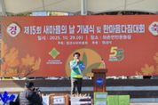 ㈜한국탑뉴스 차복원 기자 | 경산시새마을회는 29일 와촌면민 운동장에서 새마을 가족들과 초청 내빈 등 500여 명이 참석한 가운데 '제15회 새마을의 날 기념식 및 한마음 다짐 대회'를 개최했다. 이번 행사는 새마을운동 55주년으로 기념식 및 한마음 다짐 대회를 통해 그간의 공익 활동과 사회봉사 등을 위해 노력해 온 새마을 회원들을 격려하고 새마을운동을 널리 홍보하여 그 가치를 되새기는 의미 있는 시간을 가지기 위해 마련됐다. 이날 행사는 1부 기념식을 시작으로 2부 한마음 다짐 대회로 이어져 장 윷놀이, 협동 배구 등 체육대회를 통하여 참여자 간의 화합과 친목을 도모했다. 이말식 경산시새마을회장은 “이번 ‘제15회 새마을의 날’기념식과 ‘한마음 다짐대회’는 새마을운동의 가치를 재조명하고, 시민들의 새마을운동에 대한 이해를 높이는 계기가 됐다”며 “ 앞으로도 경산시새마을회는 새마을운동의 정신을 바탕으로 지역 사회 발전에 기여하고, 시민들에게 새로운 활력을 불어넣는 데 최선을 다하겠다”고 밝혔다. 조현일 경산시장은 “새마을운동은 우리나라의 눈부신 경제 성장에 앞장서 잘 살아보겠다는 국민의 의지와 신념