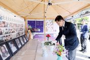 ㈜한국탑뉴스 차복원 기자 | 김관영 전북특별자치도지사가 29일 이태원 참사 발생 3주기를 맞아 전주 풍남문광장에 마련된 ‘이태원 참사 희생자 추모 분향소’를 찾아 헌화와 묵념을 올리며 희생자들을 추모했다. 분향소는 지난 2022년 10월 29일 발생한 이태원 참사를 기억하고, 다시는 같은 비극이 되풀이되지 않기를 바라는 뜻에서 전북시민대책위원회와 유가족협의회 전북지부가 공동으로 운영하고 있다. 앞서 지난 18일에는 ‘이태원 참사 3주기 전북 추모대회’가 개최돼 도민들이 함께 희생자를 기리고 안전한 사회를 향한 다짐을 나누는 자리가 마련된 바 있다. 김관영 전북자치도지사는 “이태원참사는 사회 전반의 안전의식을 일깨운 사건”이라며 “참사의 아픔을 가슴에 새기며 더욱 안전한 전북을 만드는 데 혼신의 노력을 기울이겠다”고 강조했다.