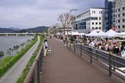 ㈜한국탑뉴스 차복원 기자 | 양평의 일상 속 자연이 새로운 관광공간으로 다시 태어났다. 양평군은 도시재생사업을 통해 조성한 강변 복합문화공간 ‘남한강 테라스’를 개장하며 군민과 관광객이 함께 즐기는 정주형 관광도시로의 전환을 본격화했다. 이번에 개장한 ‘남한강 테라스’는 양평읍 양근교에서 양평교까지 약 1.1km 구간에 걸쳐 조성됐다. 양평군은 도시재생사업 ‘남한강변 특화거리 조성사업’으로 총 95억원의 예산을 투입해 남한강변을 따라 걷기 좋은 산책로와 문화예술 테마거리, 친수 및 휴식공간을 갖춘 복합문화관광 명소로 탈바꿈시켰다. 기존 산책로에 폭 5m 규모의 데크길을 새로 놓고, 벤치와 가로수, 야간경관 조명을 추가해 낮에는 남한강 조망을 즐기고 밤에는 빛의 거리로 변하는 매력적인 공간으로 꾸몄다. 천혜의 남한강 물길과 도시재생의 결실이 어우러진 이번 사업을 통해 양평의 중심 강변이 다시 활기를 찾게 됐다. 양평군은 완공을 기념해 지난 26일 녩양평 물들임 테라스 축제’를 양평군청 앞 특설무대 일원에서 성황리에 개최했다. 이번 행사는 도시재생사업의 성과를 군민과 공유하고 지역 상권과