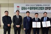 ㈜한국탑뉴스 차복원 기자 | 김제시는 27일 ㈜풀무원푸드앤컬처와 '새만금전주간' 고속도로 개통에 따라 새롭게 조성되는‘김제휴게소’운영에 따른 업무협약을 체결했다고 밝혔다. 이날 시청에서 열린 협약식에는 정성주 김제시장과 이동훈 ㈜풀무원푸드앤컬처 대표가 참석해 오늘 11월 21일부터 운영 예정인 김제휴게소를 통한 다각적 협력 방안을 추진하기로 뜻을 모았다. 이번 협약은 ▲일자리 창출 및 지역민 최우선 고용, ▲김제휴게소 운영과 활성화를 위한 신속·원활한 행정지원 협력, ▲상호 다각적인 지원방안 모색 등 지역과 기업의 상생을 위해 함께 노력하기로 했다. ‘김제휴게소’는 '새만금-전주간 고속도로' 새만금과 전주방향에 각 1개소씩 총 2개소가 개장할 예정으로 ㈜풀무원푸드앤컬처가 운영사로 선정됐으며, 각 휴게소는 식당, 즉석매장, 편의점, 카페 등 다양한 편의시설과 주유소가 조성됐다. 특히 새만금방향 휴게소에는 2층에 백산저수지를 한눈에 볼 수 있도록 복합 문화형 휴게공간을 마련하여 운전자들에게 휴식과 힐링을 제공할 예정이다. ㈜풀무원푸드앤컬처 이동훈 대표는 “이번 협약을 통해 김제시와 지속적인 협력체계를