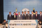 ㈜한국탑뉴스 차복원 기자 | 봉화군은 10월 29일 국회에서 농어촌 기본소득 시범사업 1차 심사를 통과한 12개 군의 전면 시행을 촉구하는 공동성명을 발표했다. 이날 공동성명문은 최종 선정에서 제외된 봉화, 진안, 장수, 곡성, 옥천 5개 군이 뜻을 함께했다. 농어촌 기본소득 시범사업은 인구감소, 고령화 등 농어촌 활력 저하에 따른 소멸 현상에 긴급히 대응하기 위해 정부가 국정과제로 추진 중인 사업이다. 선정지역 거주 주민에게 월 15만 원 상당의 지역사랑상품권을 지급해 농어촌 지역 지킴이 역할을 해온 주민의 공익적 기여에 대한 보상이자, 지역경제 활성화 마중물 역할을 한다는 데 큰 의미가 있다. 농림축산식품부는 인구감소지역 69개 군을 대상으로 공모를 실시해 총 49개 군(71%)의 신청을 받았으며, 1차 서류심사를 통해 12개 군을 선정한 후 최종 7개 군(경기 연천·강원 정선·충남 청양·전북 순창·전남 신안·경북 영양·경남 남해)을 시범사업 대상지로 선정한 바 있다. 봉화군은 이번 공모에서 △전 군민 월 17만 원 지급안(기본 15만원 + 군비 추가 2만원) △통합재정안정화기금과