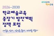 ㈜한국탑뉴스 고화랑 기자 | 서울특별시교육청은 ‘예술로 잇다, 감성을 품다, 미래를 열다’를 주제로 10월 30일, 제2서울창의예술교육센터에서 『2026~2030 학교예술교육 중장기 발전계획 비전 선포식』을 개최한다. 선포식은 ‘AI 아트랩 서울’건립을 통해 미래형 예술교육의 새 장을 여는 서울시교육청의 비전을 공유하는 자리로, 예술교육 분야 교수 및 전문가, 학생, 학부모, 초‧중‧고‧특수 교원 등 200여 명이 참석할 예정이다. 서울시교육청 2026~2030 학교예술교육 중장기 발전계획은 ‘예술이 일상이 되는 학교’를 비전으로 제시하고, △'미래역량 기반 학교예술교육' △'마음을 채우는 서울예술교육' △'지역과 상생하는 예술생태계'의 세 가지 추진 전략을 통해 서울 학교예술교육의 발전 방향을 구체화했다. 이번 계획은 예술이 학생의 마음 성장을 돕는 교육적 힘이 되도록, 음악·미술·연극·영화·뮤지컬 등 다양한 예술교육 경험을 통해 정서적으로 어려움을 겪는 학생도 예술로 마음을 채우고 성장할 수 있도록 지원하는데 중점을 두고 있다. 나아가 모든 학생이 예술을 누리며 일상에서 직접 예술을 경험할 수 있게 하는