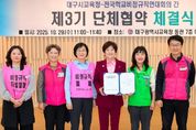 ㈜한국탑뉴스 고화랑 기자 | 대구시교육청은 2025년 10월 29일 오전 11시, 대구학교비정규직연대회의와 ‘제3기 단체협약 체결식’을 개최한다고 밝혔다. 이는 지난 2022년 12월 27일 제3기 단체교섭을 시작한 후, 올해 9월까지 본교섭 16회, 실무교섭 54회를 거쳐 최종 협약에 이른 것이다. 대구시교육청은 단체교섭 기간 중 우선협약을 통해 2024년 2월 19일 산업재해근로자‘생활안정지원금’제도를 우선 시행하고, 폐암 확진 근로자의 근무환경 개선을 위해 본인 희망에 따라 직종전환(조리종사원 → 특수교육실무원)을 기 시행한 바 있다. 아울러 지난 추석부터 당직경비원의 근무여건 개선을 위해 명절(설, 추석) 기간 중 각 3일간의 유급휴일을 선제적으로 부여했다. 이번에 체결하는 단체협약에는 학생 교육활동 및 현장의 행정 지원을 강화하기 위해 ▲교무실무사 직종통합 및 단계적 상시 전환 추진, ▲방학 중 비근무자인 사서 직종(10일→15일) 및 조리 직종(8일→12일)의 방학 중 근무일수 확대를 추진한다. 교육공무직원의 근무여건 개선 및 복지 향상을 위해 ▲정년퇴직준비휴가 신설(3~