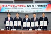 ㈜한국탑뉴스 차복원 기자 | 창원특례시는 30일 국회의원회관에서 ‘동대구–창원–가덕도신공항 고속화철도’의 제5차 국가철도망 구축계획 반영을 위해 추진 중인 범시민 서명운동(10.17.~11.16.)과 연계해, 사업 추진에 대한 공감대 확산을 위해 ‘동대구–창원 고속화철도 반영 촉구 국회토론회’를 개최했다. 이번 토론회는 윤한홍, 최형두, 김종양, 이종욱, 허성무 국회의원이 공동으로 주최하고 창원특례시가 주관해 ‘동대구-창원-가덕도신공항 고속화철도’의 필요성을 적극 알리고, 사업의 신속한 추진을 촉구하는 창원특례시민의 염원을 하나로 모으기 위해 마련됐다. 창원특례시 국회의원 5명은 “대한민국의 지속가능한 발전은 수도권과 비수도권이 균형 있게 성장하는 데서 시작된다”라며, ‘동대구–창원 고속화철도’가 그 목표를 달성하기 위한 핵심 사업임을 강조했다. 이어, “제5차 국가철도망 구축계획에 이 사업을 반드시 반영하고 조속히 추진할 것”을 한목소리로 강력히 촉구했다. 이날 행사에서는 ‘동대구-창원 고속화철도 반영 촉구 서명식’과 조속한 사업 추진을 염원하는 ‘피켓 세리머니’가 함께 진행되어, 참석자 모두가