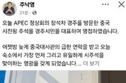 ㈜한국탑뉴스 차복원 기자 | 경주시는 주낙영 경주시장이 30일 오후 APEC(아시아·태평양경제협력체) 정상회의 참석차 경주를 방문한 시진핑 중국 국가주석을 공식 영접했다고 밝혔다. 주낙영 시장은 이날 코오롱호텔 로비에서 경주시민을 대표해 시진핑 주석을 직접 맞이하고 꽃다발을 전달했다. 주 시장은 “천년 고도 경주는 이제 문화와 국제회의가 공존하는 도시로 성장하고 있다”며 “이번 APEC을 계기로 한중 간 우호 증진은 물론, 아시아 각국과의 협력 관계를 강화하는 출발점이 되길 바란다”고 환영 인사를 전했다. 시진핑 주석은 “16년 만에 다시 경주를 찾게 돼 감회가 새롭다. 지난 방문의 따뜻한 환대를 기억한다”며 “천년의 역사와 문화를 품은 경주에서 APEC 정상회의가 열리는 것은 매우 뜻깊은 일”이라고 화답했다. 이번 영접 행사는 APEC 정상회의 주요 일정의 하나로, 경주의 역사·문화적 품격을 국제사회에 알리고 세계 각국 정상들에게 ‘환대의 도시’ 이미지를 각인시키는 계기가 됐다는 평가다. 한편, 경주는 APEC 정상회의 기간 대표단의 방문이 이어지며 세계 속 문화·관광 중심도시로 주목