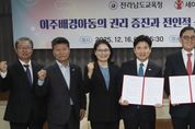 ㈜한국탑뉴스 고화랑 기자 | 전라남도교육청은 16일 청사 비즈니스실에서 세이브더칠드런(총장 정태영)과 ‘이주배경아동의 권리 보장과 전인적 성장을 위한 업무협약’을 체결했다. 이번 협약은 이주배경학생, 특히 법적 지위가 불안정한 미등록 아동들이 건강하게 성장할 수 있도록 행정적, 재정적 지원 체계를 마련하고, 모든 아동이 차별 없이 교육받을 수 있는 포용적 교육 생태계를 조성하기 위해 추진됐다. 협약에 따라 양 기관은 ▲ 미등록 이주배경학생의 건강·심리·주거 지원 ▲ 이주배경학생과 비이주배경학생 간 통합 활동 지원 ▲ 아동권리 교육 확대 및 교육공동체 인식 개선 등 다양한 사업을 함께 추진하게 된다. 특히, ‘미등록 이주배경학생의 건강·심리·주거 지원’사업은 그동안 사고나 질병에 대해 지원받기 어려웠던 미등록 이주배경학생들의 보호 사각지대를 해소할 수 있을 것으로 기대된다. 정태영 세이브더칠드런 총장은 “세이브더칠드런은 올해부터 3년 동안 이주배경아동을 전략 대상으로 선정하고 지원 사업에 착수했다. 이번 협약을 통해 전남 이주배경아동이 건강하고 안전하게 성장할 수 있는 기반이 마련되기를 기대한다. 전